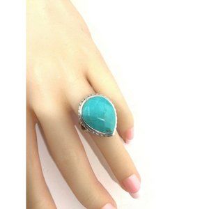 Barse Sterling Silver Large Faceted Turquoise Tear Drop Ring, Size 6.75