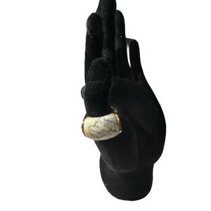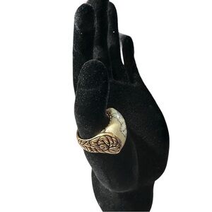Barse Thailand Gold Tone Intricate Design White Howlite Stone Cocktail Ring Sz 8
