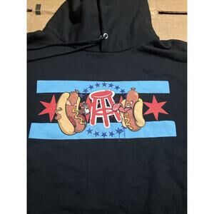 Barstool Sport Hoodie Sweatshirt Chicago Hot Dog Flag. Champion Eco, Black 3XL