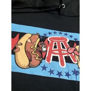 Embrace your love for sports and style with the Barstool Sport Hoodie Sweatshirt in Chicago Hot Dog Flag design. This Champion hoodie features a unique and eye-catching print, showcasing your pride for both your city and favorite sports team. Crafted from quality materials, this EcoTag Black hoodie offers comfort and durability, making it perfect for everyday wear. The unisex design ensures a versatile fit for all fans, while the 3XL size caters to a range of body types. Whether you're headed to a game or simply running errands, this hoodie is a must-have piece of fan apparel that blends fashion and sports seamlessly. Upgrade your wardrobe and show off your allegiance in style with this statement piece.