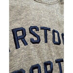 The Barstool Sports Men's Size Large Hoodie Pullover is a stylish and comfortable garment perfect for various activities and seasons. Made from cotton fleece material with a solid gray color, this hoodie features long sleeves, a hood for added warmth, and a missing drawstring closure. The embroidered spell-out logo of Portnoy adds a unique and personalized touch, fitting for those who enjoy a casual yet trendy look. Whether it's for the gym, walking, or any other sport, this hoodie with a regular fit is a versatile and reliable choice.