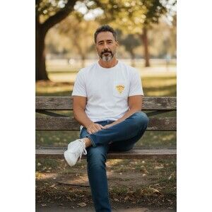 The Barstool Sports One Bite Everybody Knows The Rule Pizza Medium Pocket Tee Shirt is a white T-shirt made of cotton with a solid pattern and short sleeves. It features a crew neck and a regular fit, perfect for all seasons. The shirt bears the logo of the brand Comfort Colors and is inspired by sports, making it a great addition to any fan's wardrobe. This unisex shirt is cropped and double-sided, adding a unique touch to its design. Made in Honduras, this T-shirt is a comfortable and stylish choice for any casual occasion.
