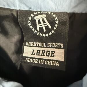 The Barstool Sports Pardon My Take UNC Windbreaker Quarter Zip Jacket in men's size L is a stylish and versatile outerwear option suitable for various occasions including travel, casual outings, and workwear. Made from lightweight polyester with a color block design, this mid-length windbreaker features a stand-up collar, half zip closure, and convenient pockets for added functionality. The jacket is branded with a logo accent and is machine washable for easy care. Perfect for the winter, fall, and spring seasons, this windbreaker is ideal for men who appreciate a touch of sports-themed flair in their wardrobe.