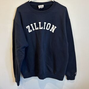 Barstool Sports ZILLION Crewneck Navy Blue L Champion Eco Cotton Blend EUC Read