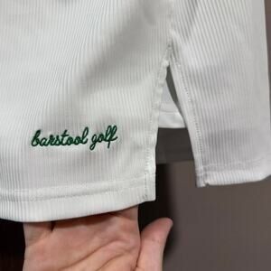 Tee it up in style with this sleek Barstool Golf skort in a crisp white ribbed design. Features a flattering high-waist fit with a subtle front slit and built-in shorts for comfort on and off the course. Embroidered “barstool golf” logo adds a sporty, exclusive touch. Size X-Large – new without tags and ready to wear!