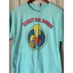 Bart Simpson Teal Blue S/S T-Shirt Men's Size L Right On Dude