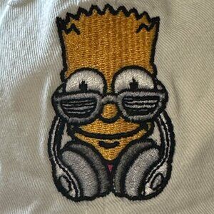 Stay in style with the Bart Simpson headphones shades One Size Fits Most buckle back white hat. This unisex hat, made of 100% cotton, is from the brand USA Premium Head Wear. Clean and comes from a smoke free home.