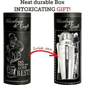 🧿✓ UNDENIABLY THE PERFECT GIFT FOR COCKTAIL LOVERS » First-class bartending kit packed inside a durable, handsome cylindrical case. Your recipient will be thrilled like a child in a candy store. Plus, to make things truly delicious, we’ll throw in an online cocktail catalog, and two professional cocktail picks to add a fun, visual element to your drinks - and to guarantee a knockout presentation.