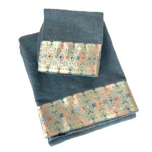 Barth Dreyfuss Bath & Washcloth Set Cotton Powder Blue With Applique Embroidery