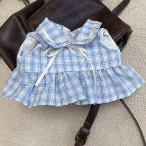 Bartholomew bear cute custom clothes outfits - blue plaid dress (Tiny)