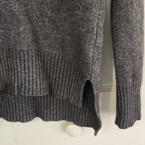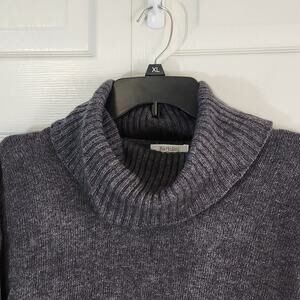 Beautiful gray sweater by Bartolini. Turtleneck. Ribbed cuffs, hem, & neckline. Side slits. High-Low. Wool Cashmere blend. EUC