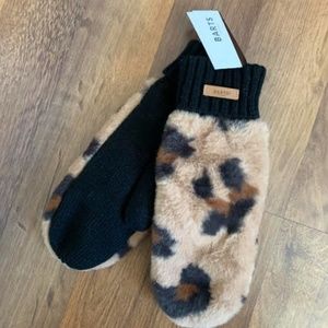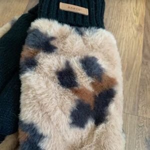 Voluminous animal look! These fashionable mittens from Barts reliably protect the hands from the freezing cold. The lining, which is made of carefully worked fleece, ensures your hands stay particularly warm and are able to enjoy the soft wearing comfort. Visually, these mittens are bound to win you over with their stylish fur look in a trendy leopard print. The palm of the mittens stands in visual contrast to the upper and comes in a plain-colored knit material. With folded over cuff.