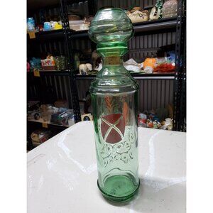Barware Old Fitzgerald Venetian Green Glass Decanter Bottle & Stopper 1960s