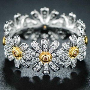 Barzel 18K White Gold Plated Floral Sunflower Ring Made with Swarovski Crystals