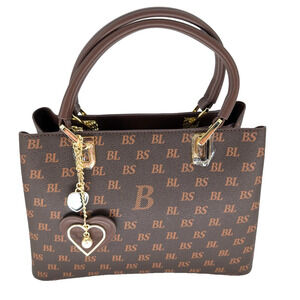 Basa Bela Brown Vegan Leather Logo Top Handle Crossbody Classic Handbag New