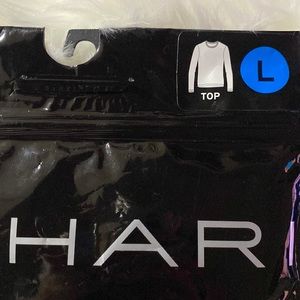 A brand new set of two face layer in light gray by Tahari. These have a rounded neck and long sleeves. A large fits a chest of 42-44 and a waist of 36-38. Happy shopping.