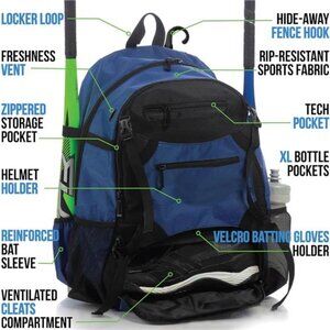 *Designed to accommodate players of all ages, this large capacity baseball equipment bag lets baseball, softball and tee-ball players easily carry all of their gear in one bag. From baseball bats, gloves, and helmets to cleats, conveniently carry everything for your game or tournament.
