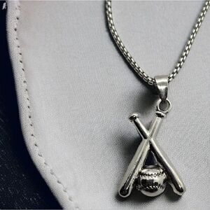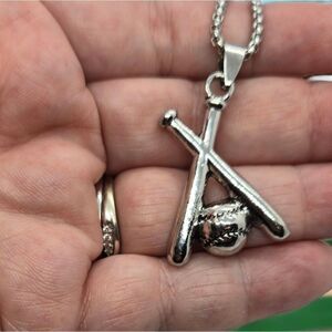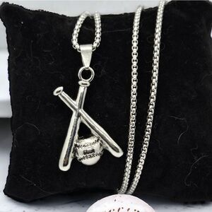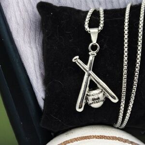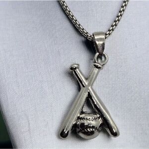 Baseball Bat Pendant Stainless Steel Necklace Softball Player Sports Mom Gift
