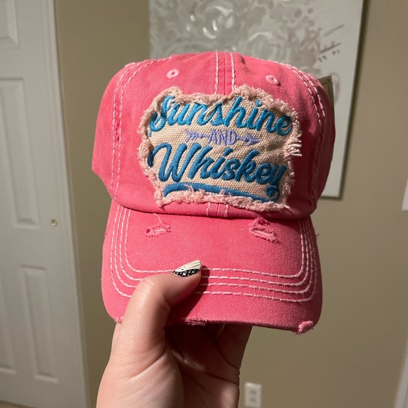 Pink distressed sunshine & whiskey baseball cap