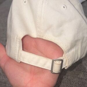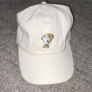 Cream baseball cap featuring an embroidered character design. Perfect for casual wear.