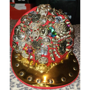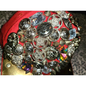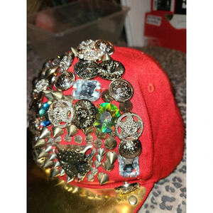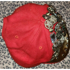 Baseball Cap Unisex One Size Red Studded Rock Hip Hop Snapback Cotton.