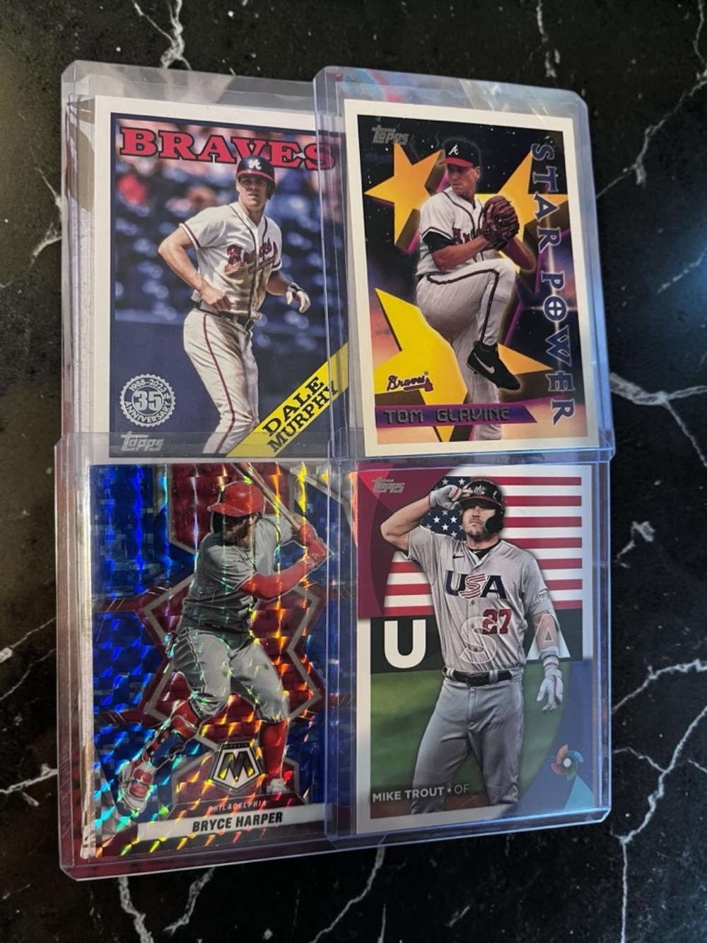 DALE MURPHY TOM GLAVINE BRYCE HARPER MIKE TROUT All in hard protection sleeves Location BD3D