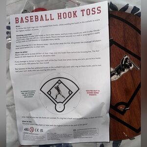 Enjoy great family fun with the Baseball Hook Toss Game. Throw the ring and aim for a home run!