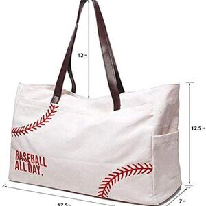 Baseball Mom Bag Canvas Sports Tote Large Capacity Gifts for Women Youth