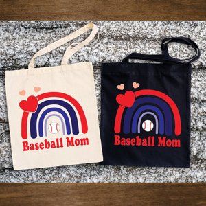 Baseball Mom Double Strap Cotton Canvas Shoulder Tote Bag