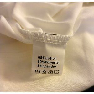 Made from a blend of cotton, poly, and spandex, it comes in size XL with a white and brown color scheme.