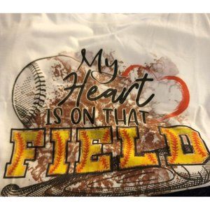 Baseball Mom T-shirt My Heart is On the Field White Graphic Tee Size XL Jj3401