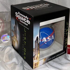 Here is something for every fan in your family - four collectible items to decorate your Holiday tree - First, a 1994 Babe Ruth Hallmark ornament complete with his MLB stats on the back and in its original box. Then a Red Sox baseball ornament still in its plastic box which has its MLB holographic info and number (see photo). Then a Carolina Panthers football ornament in its original box. And lastly, a NASA ornament from the Kennedy Space Center Visitor Complex in its original box.