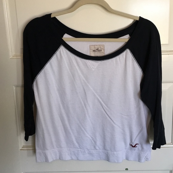 A blue and white mid-length baseball tee