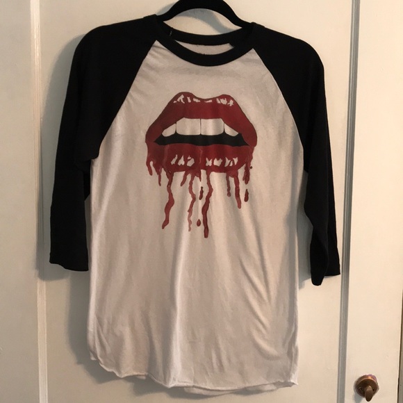 Red lips baseball tee. 3/4 length sleeves. As seen on celebs!