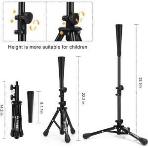 1.【STURDY TRIPOD STAND】batting tee for kids, Sturdy tripod configuration provides stability.