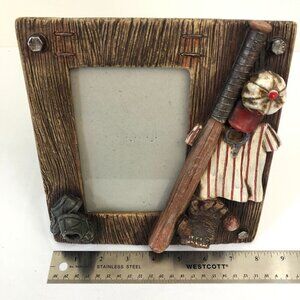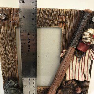 This picture frame measures 8 inches by 8 1/2 inches overall and is in good used condition.