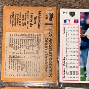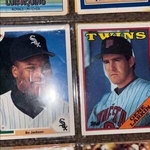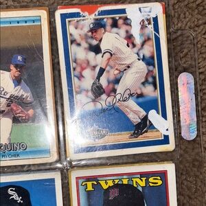 Set of vintage baseball trading cards featuring various players. Includes colorful borders and team logos.