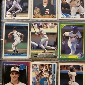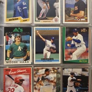 This assortment of baseball cards features a collection of vintage MLB trading cards. The cards are from various teams. Perfect for any baseball card collector, this assortment offers a diverse selection of sports trading cards from the United States.