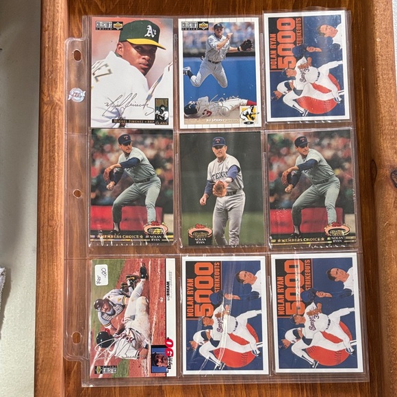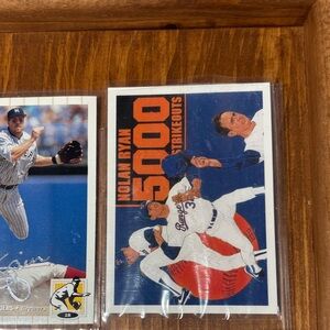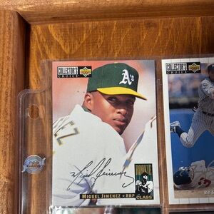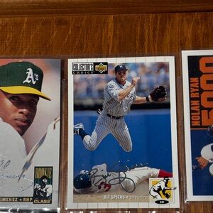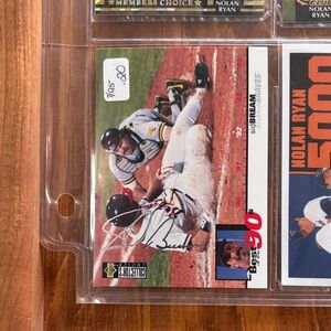 Collection of baseball trading cards featuring various players. Includes cards with action shots and player’s signature!