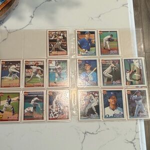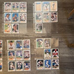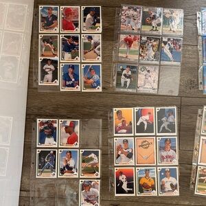 Collection of baseball trading cards featuring various players. Perfect for collectors and sports enthusiasts.