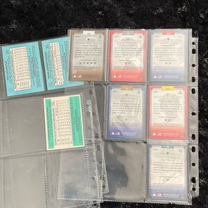 Collection of vintage baseball trading cards featuring various players. Cards are displayed in a protective sleeve.9 cards in total.