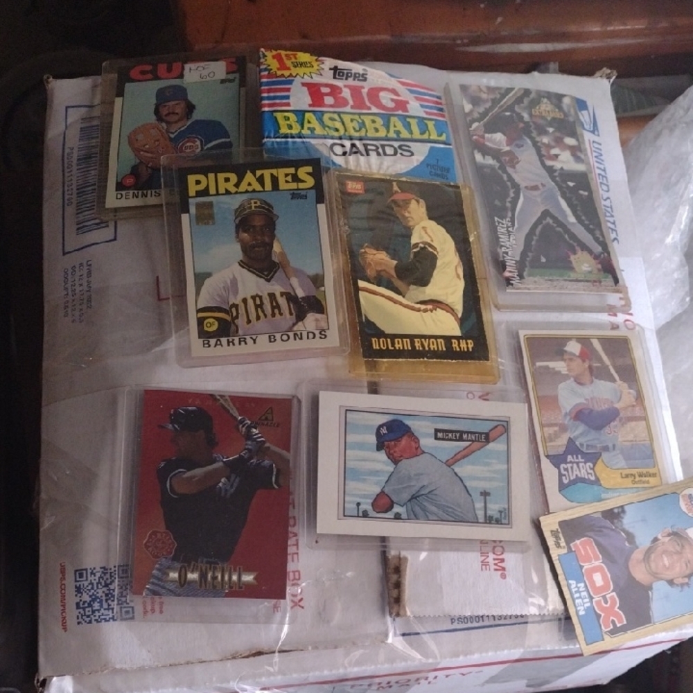 Collection of baseball trading cards featuring various players. Includes cards with colorful designs and player images.