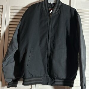 Nice two tone jacket. Tags pictured. Front slash pockets. Look like a baseball jacket. Add logo and ready to go. 27 inches pit to pit.