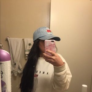 Jean like maternal with embroidered roses and "property of no one" with white letters have honestly only used like twice and have had it for two years