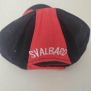 Polar bear baseball cap. This cap is from Svalbard, Norway, where you see polar bears. It is done in stunning black with red accents and the polar bears are embroidered on the front with Svalbard embroidered on the back. It has an adjustable tab. Brand new and from a non-smoking home.