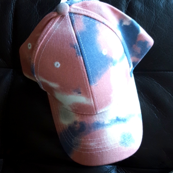 NWT. Cute topper for bad hair days. Pink, cream, and blue multicolored baseball cap. Has adjuststable silver buckle.