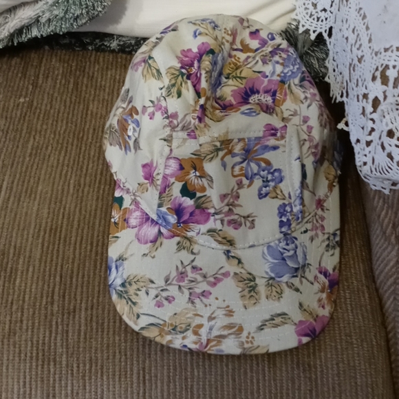 Crean color hat with purple and pink flowers never worn