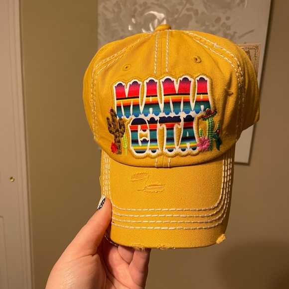 Yellow MAMACITA baseball cap distressed