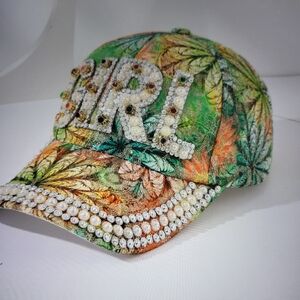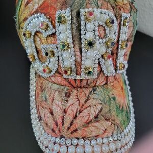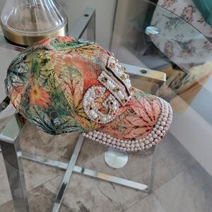 Rhinestone faux pearl decor baseball cap multicolor size 50-52 cm,19-21 inch,use very good condition,materials faux pearls and stone and polyester
