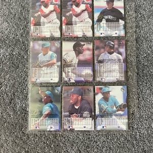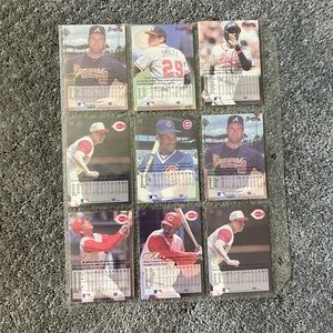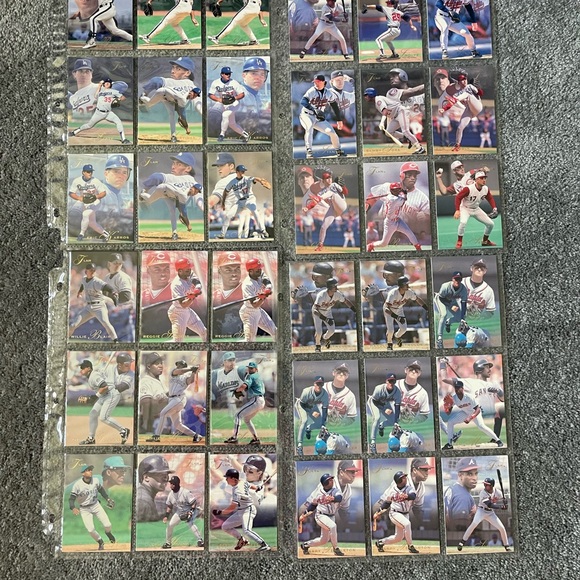 32 baseball cards stored in sleeves for 25 plus years.